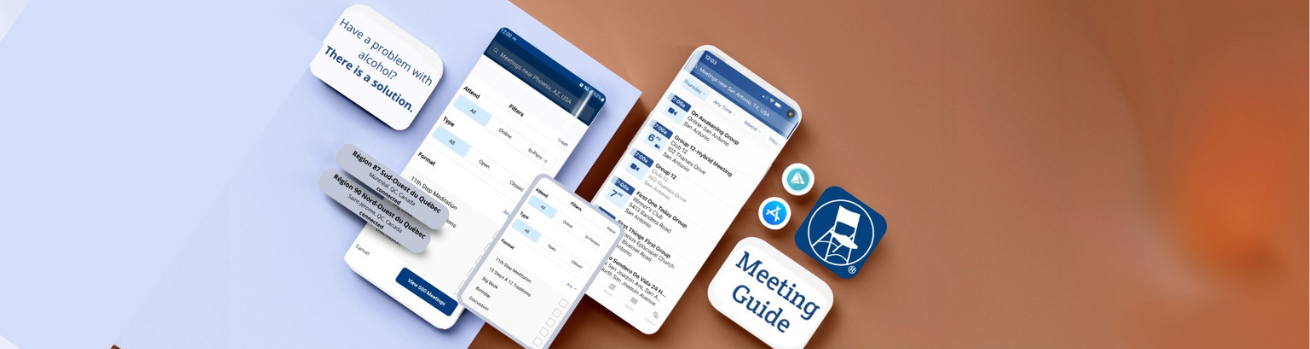Pour faciliter encore l’accès à ces réunions à l’échelle mondiale, une application mobile avec géolocalisation permet de localiser facilement la réunion la plus proche de sa position. Ainsi, plus de 100 000 réunions hebdomadaires sont répertoriées dans l’application mobile Meeting Guide. Cette application se synchronise 2 fois par jour avec les sites Web de plus de 400 entités AA à travers le monde.